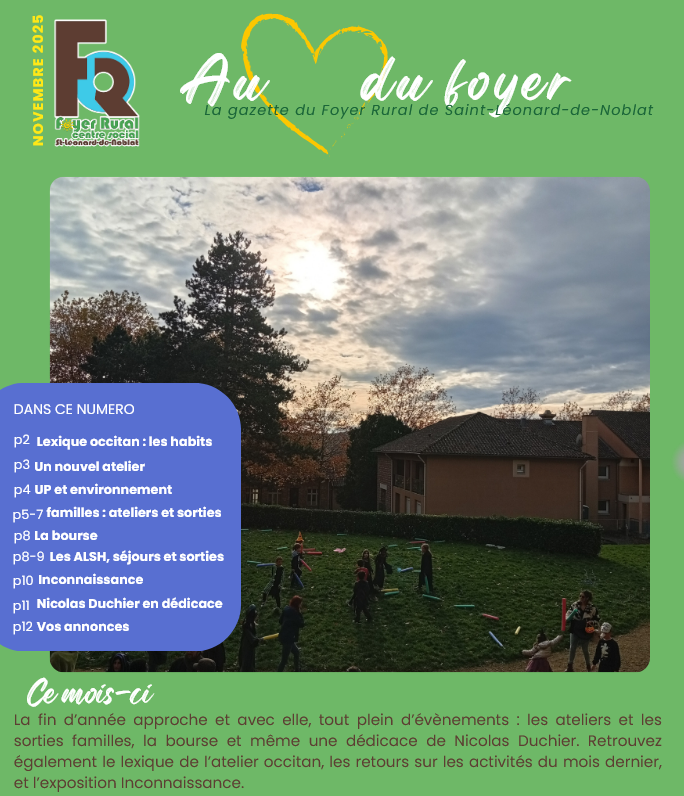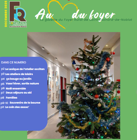 Retrouvez en un clin d’oeil, ou presque, l’ensemble des activités proposées par le Foyer Rural – Centre social de Saint Léonard de Noblat chaque mois en lisant notre gazette mensuelle !